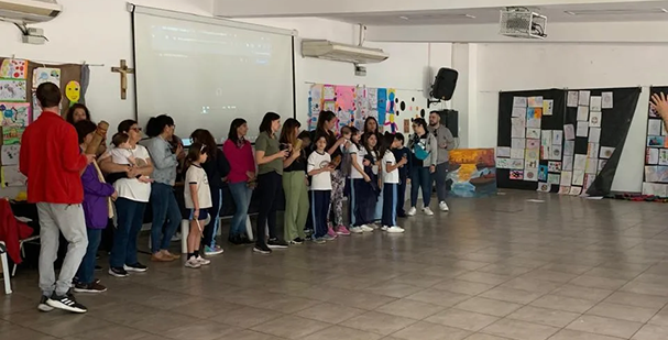 El Coro de niños del Colegio dirigido por la profesora Silvia Navarro participó en un tradicional encuentro de coros de niñas y niños de las escuelas de Hurlingham el pasado sábado en el Centro Cultural Municipal, Leopoldo Marechal. Calidez, sensibilidad y emoción en un contexto de amor y compañía brindado por las familias de los pequeños cantantes. Gracias por representarnos tan bien y felicitaciones.