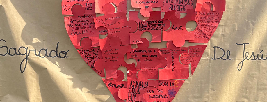 Al terminar esta parte formal los chicos pasaron al frente y en un cartel enorme en el que los preceptores habían escrito nuestro lema “Sagrado Corazón de Jesús, en vos confío” y fueron formando el corazón con las piezas de rompecabezas, sumando así cada cosa